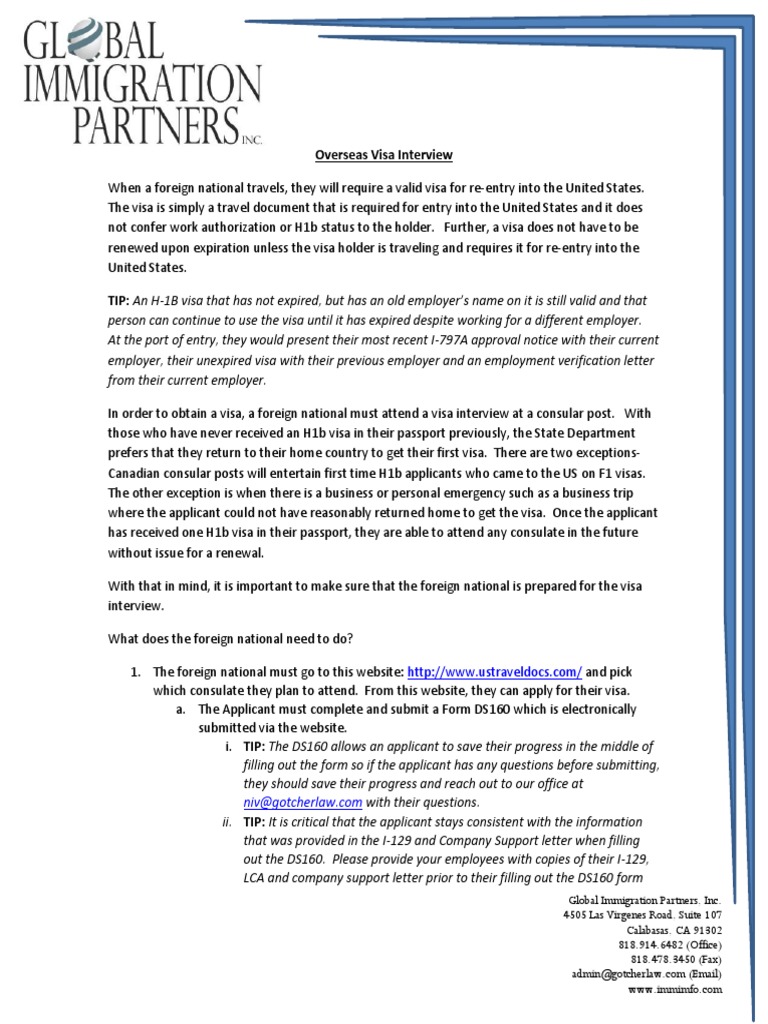 H1b Visa Stamping Documents Checklist For India Mexico Canada