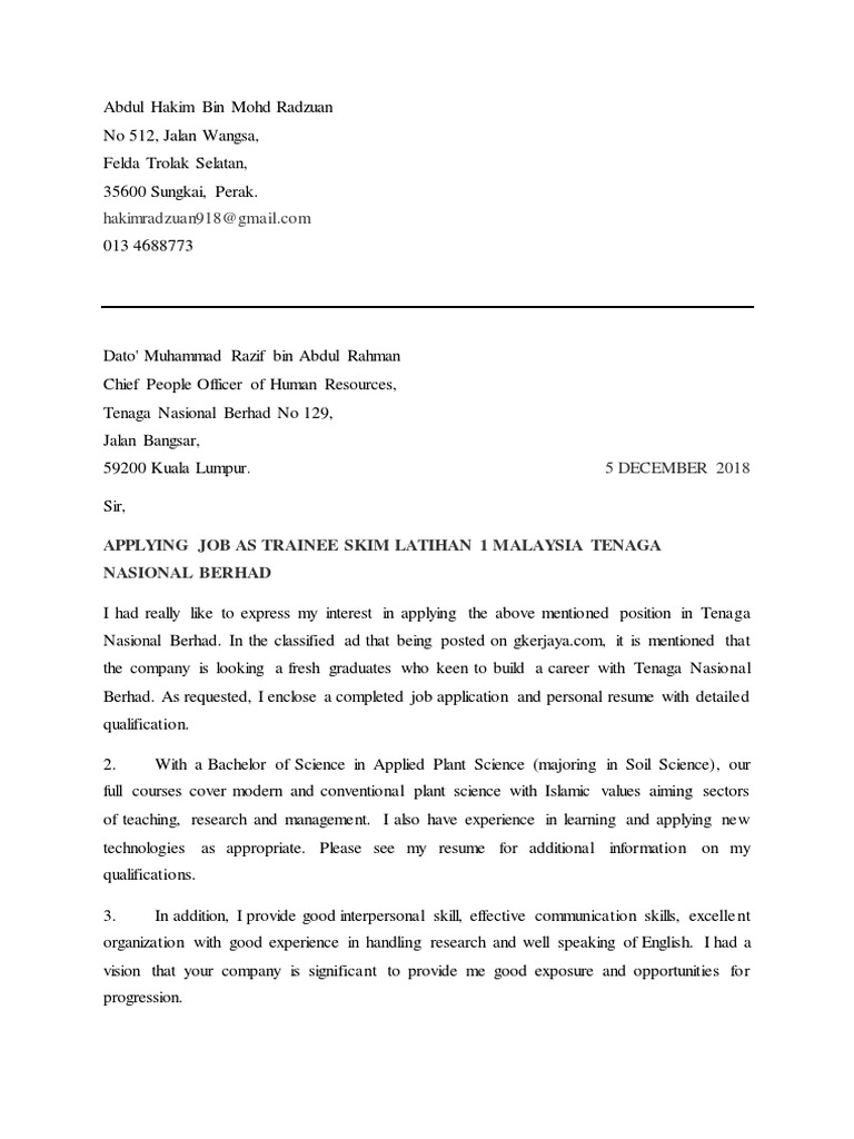 Hakim Radzuan Cover Letter Sl1m Tnb